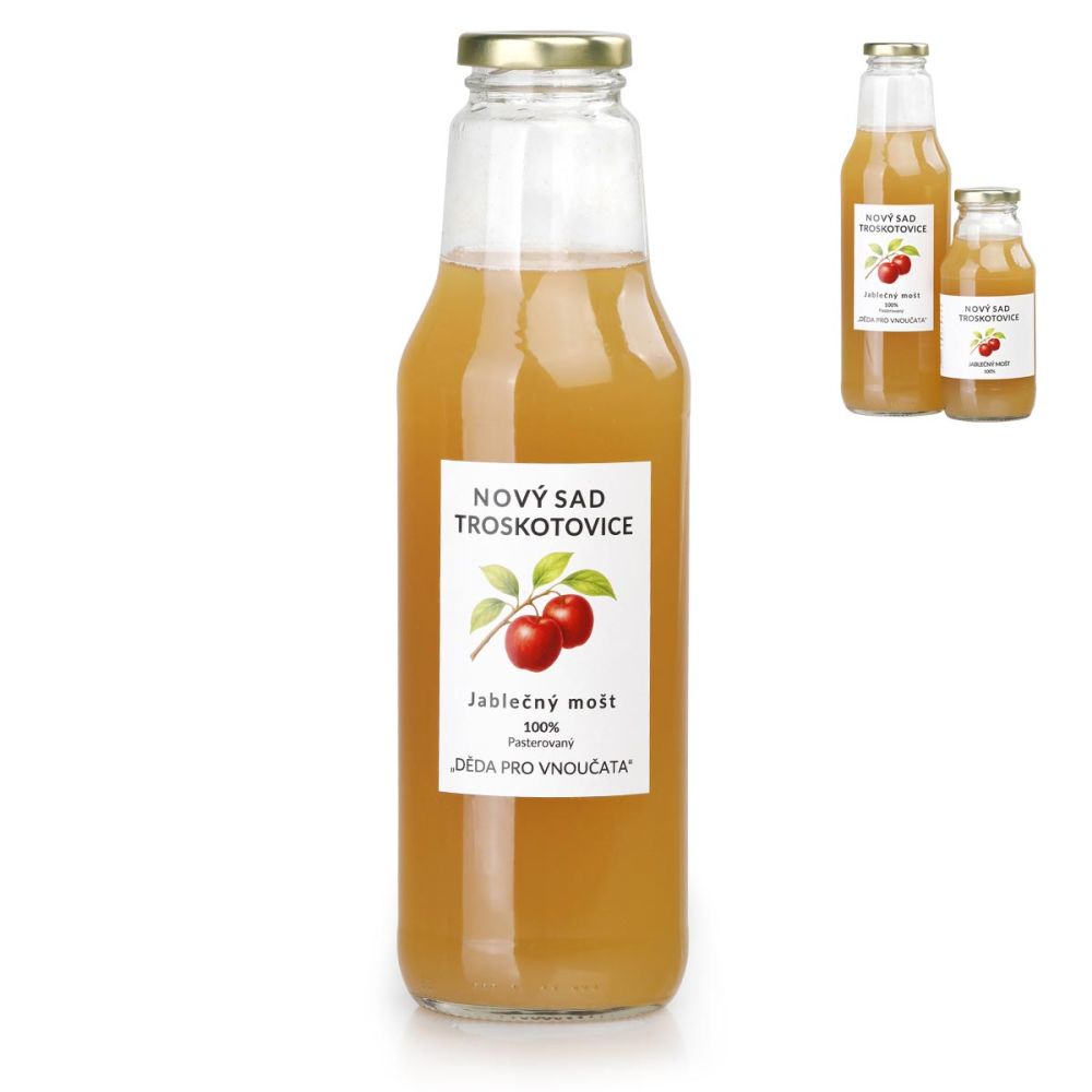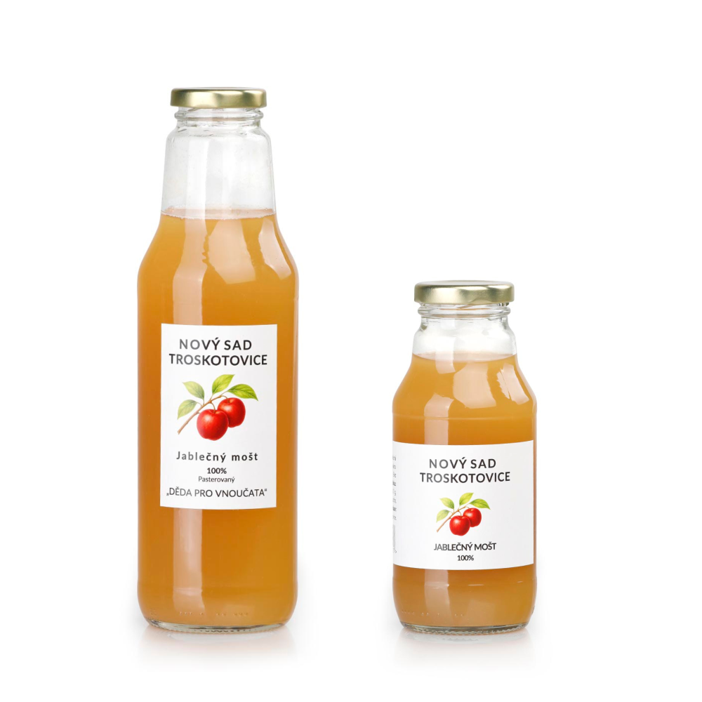 Naše 100% ovocná jablečná šťáva 100% je vyrobená z jablek vypěstovaných v Troskotovicích. Kvalitu produktu si hlídáme od samotného pěstování jablek až do konce, kdy vyrobenou šťávu plníme do bagů, Naše ovocná šťáva je bez přidaného cukru, bez konzervantů. Je šetrně pasterována a je nefiltrována. Je velmi lahodné chuti, díky bag in boxu si výborně drží svou vynikající chuť i příjemné aroma.