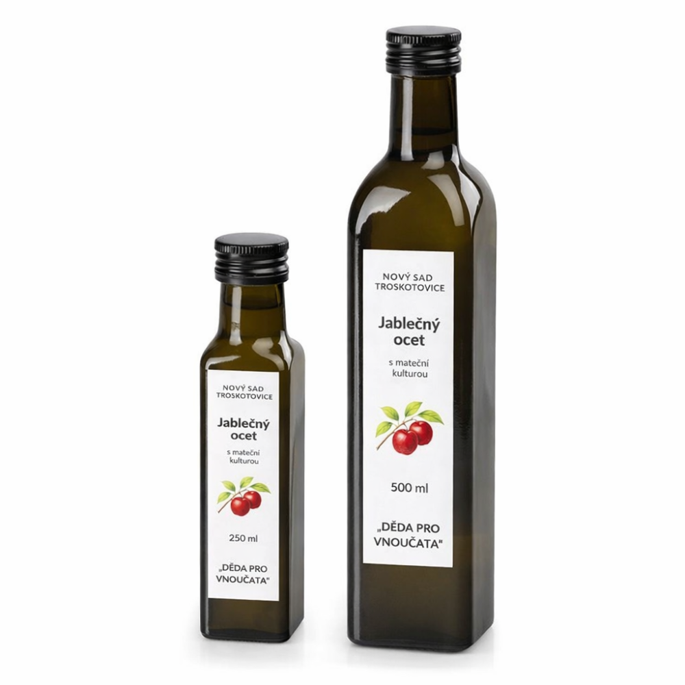 Náš jablečný ocet s mateční kulturou je vyráběn tradičním způsobem z jablek pocházejících ze sadu v Troskotovicích. Díky šetrnému zpracování si zachovává svou přirozenou podobu – je nefiltrovaný, nepasterizovaný (RAW) a obsahuje živou mateční kulturu.